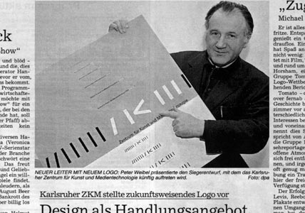 Das ZKM schrieb einen Wettbewerb für ein neues Erscheinungsbild aus. Exakt erkannte ich die Besonderheiten des ZKM als weltweit einzigartiges Kultur- und Forschungsinstitut und integrierte diese in unser Konzept. Die Folge war eine hohe Identifikation des Direktors Prof. Peter Weibel und seiner Zielgruppe mit dem Design, sowie ein klares und gleichzeitig komplexes medienübergreifendes Erscheinungsbild.
