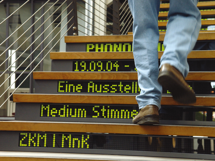 Auf diese Weise dient das Anzeigesystem nicht nur der blossen Information sondern ist zugleich Skulptur und mediale Installation.