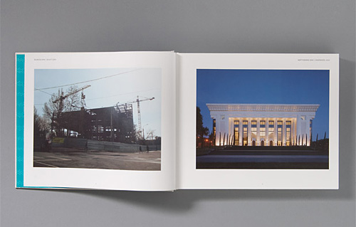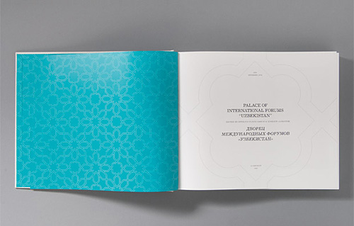 Der Palace of International Forums „Uzbekistan“ wurde in der extrem kurzen Zeitspanne von nur sechs Monaten fertiggestellt. Die durch Fotostrecken getragenen Kapitel der Baudokumentation sind in keinem festen Raster angeordnet, sondern greifen in variablen Größen und einer freien Anordnung die Dynamik des Projektes auf. Während Aufnahmen professioneller Fotografen das fertiggestellte Gebäude vorstellen, dokumentieren Amateuraufnahmen und ein Zeitstempel, der das extreme Bautempo veranschaulicht, dessen Entstehungsprozess. Im dritten Teil wird die gewaltige Dimension des Projektes auf einfache Zahlenbeispiele herunter gebrochen.