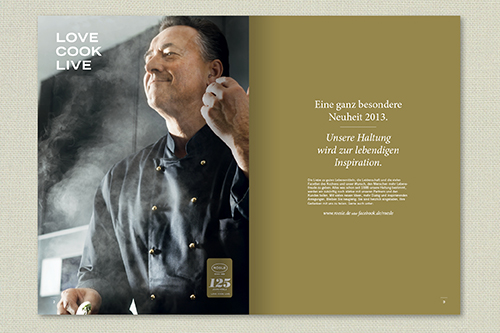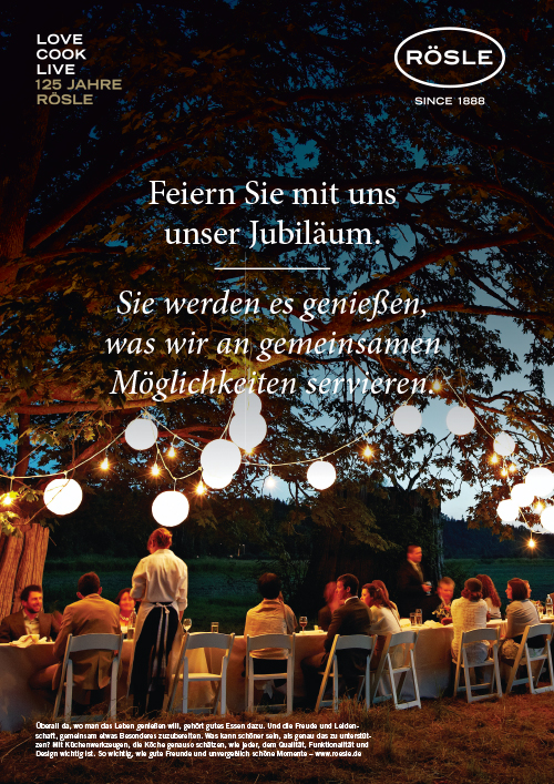 Zum Anlass des 125-jährigen Jubiläums beauftragte Rösle Ippolito Fleitz Group, eine neue Markenstrategie zu entwickeln. Für den bis dahin recht nüchternen Auftritt erdachten wir einen erweiterten Markenraum, der die Liebe zu guten Nahrungsmitteln, die Freude der Zubereitung und den kulturellen Wert des Genießens erlebbar – und für Rösle differenzierend nutzbar macht: Love. Cook. Live. Ein neues Fotokonzept bringt Produkte und Lebensmittel stimmungsvoll zusammen. Geschichten rund um Genuß und Leben verleihen den Kommunikationsmedien einen unterhaltenden Mehrwert. Rösle hat 2013 erfolgreich das neue Konzept umgesetzt und geht aktuell mit Ippolito Fleitz Group den nächsten Schritt: Die Neugestaltung der Produktverpackungen.