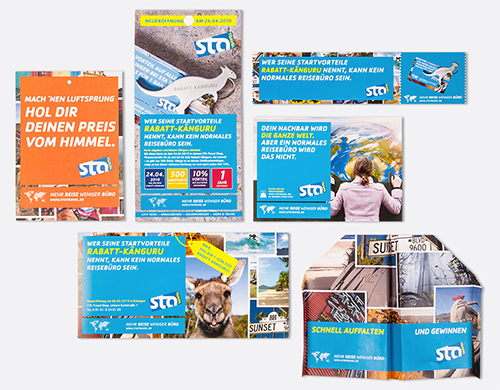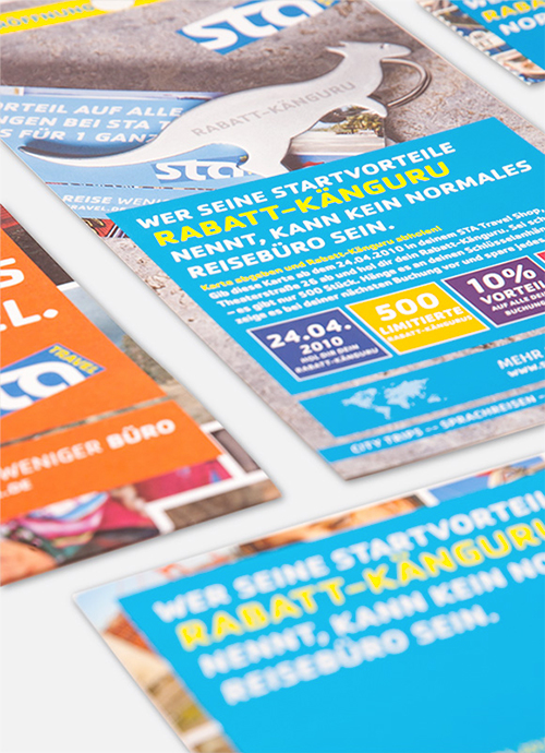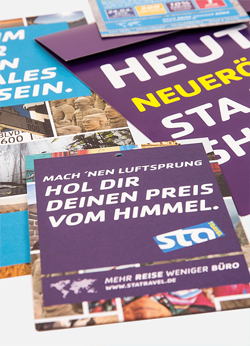 STA Travel wollte 2010 viele Shopneueröffnungen nutzen, um auf sich als etwas anderes Reisebüro aufmerksam zu machen und neben Studenten eine neue Zielgruppe anzusprechen: Individualreisende von 30 bis 45 Jahre. Mit dem Claim „Mehr Reise, weniger Büro“ hebt Ippolito Fleitz Group STA Travel als unbürokratischen und reiseaffinen Veranstalter aus der Masse der Pauschalbüros hervor. Eröffnungsevents mit hohem Erlebniswert wie z.B. die Rundfahrt in einem Londonbus, Kofferversteigerungen oder Gewinnspiele locken viele Neukunden in die Filialen und bescheren STA Travel 2010 den höchsten Neukundenzulauf seit langem. Das Design schafft mit dem Bilderteppich eine visuelle Klammer, die im Rahmen der Corporate Identity einen eigenen WiederÂerkennungswert hat.